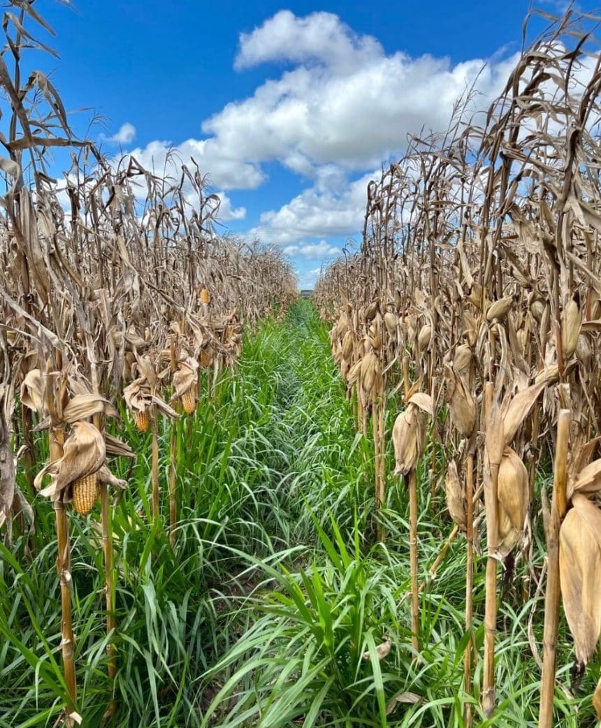 “Outra grande vantagem do consórcio entre milho e capim é a supressão de plantas daninhas. A presença da forrageira na área reduz a competição por água, luz e nutrientes com a cultura do milho, além de diminuir a necessidade e os custos com herbicidas. Após a colheita do cereal, o produtor ainda passa a contar com uma área de pastagem formada, que pode ser utilizada na alimentação do gado durante o período seco, garantindo uma ‘terceira safra’ com a pecuária. Esse sistema também melhora o volume e a qualidade da palhada deixada para a safra seguinte”, explica.