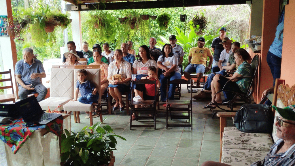 A equipe da Federação da Agricultura Familiar de Mato Grosso (FEDAF-MT), em parceria com a APROFIR – Associação dos Produtores de Feijão, Pulses, Grãos Especiais e Irrigantes de Mato Grosso, participou de um encontro no Assentamento Santo Antônio da Fartura, na região do município de Campo Verde, para apresentar aos produtores da agricultura familiar o projeto Cacau Sustentável MT.