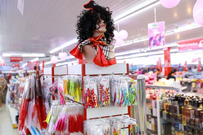 FANTASIAS E PRODUTOS TÍPICOS: Fantasias, espumas, spray, lantejoulas, paetês, serpentinas, confetes, buzinas, tintas, máscaras e outros produtos típicos devem ser adquiridos em lojas especializadas. Confira na embalagem informações como idade indicada, origem, quantidade, composição e prazo de validade. Em produtos importados, as informações devem estar em língua portuguesa.